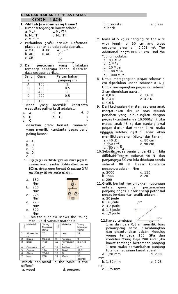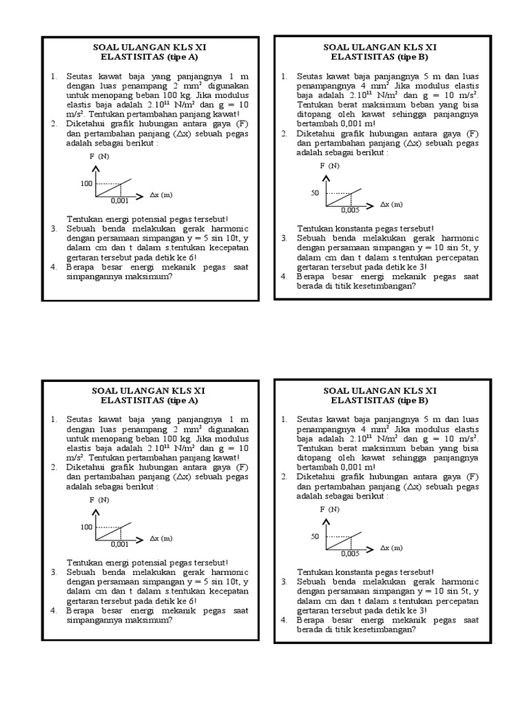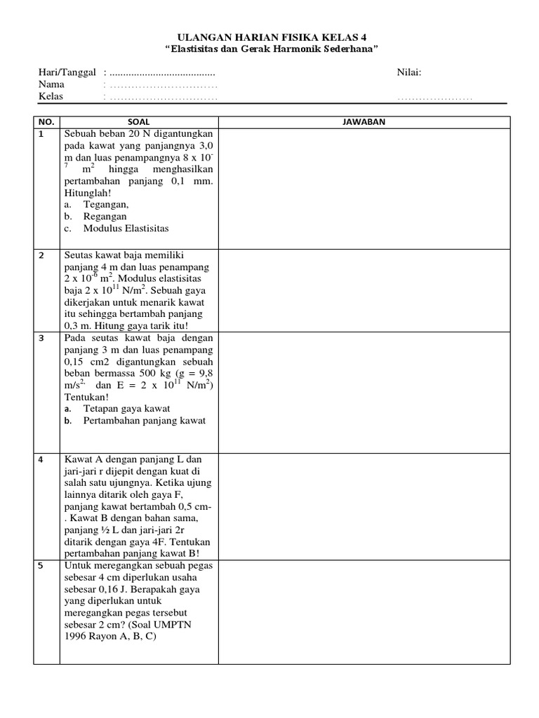Soal Ulangan Harian 1 Fisika Elastisitas Dan Hukum Hooke
