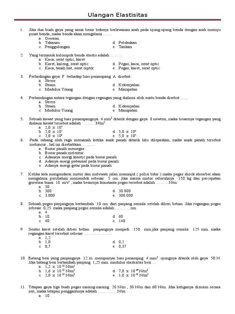 Soal Fisikan Sma Kelas 11 Tentang Elastisitas Bahan Serta