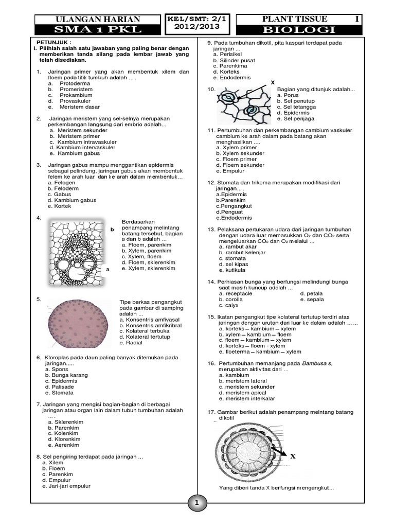 Soal Lathian Struktur Dan Fungsi Jaringan Tumbuhan