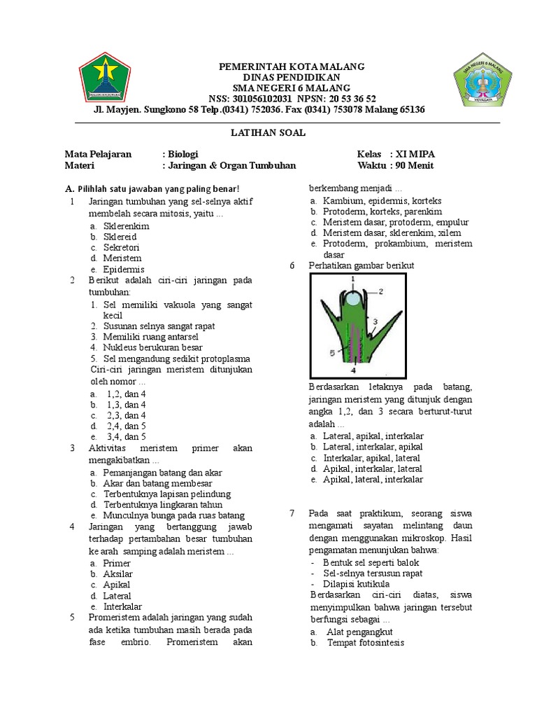 Jaringan Pada Tumbuhan Dan Lat Soal