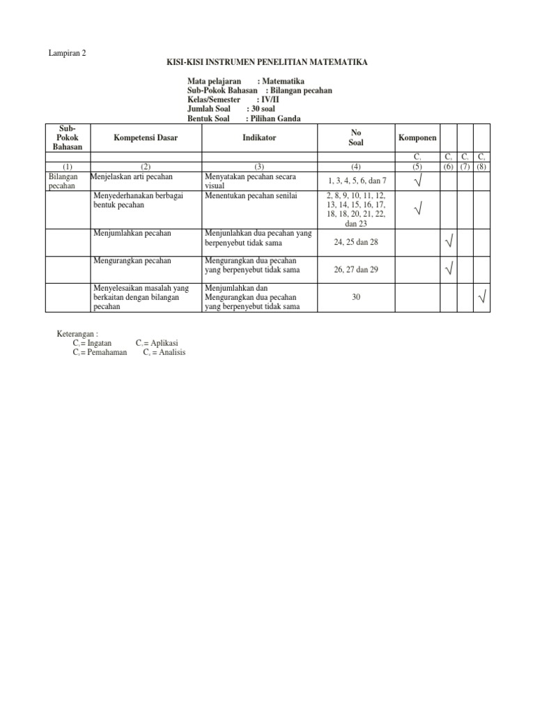 Kisi Kisi Soal Matematika Kelas 4 Smtr 2 2