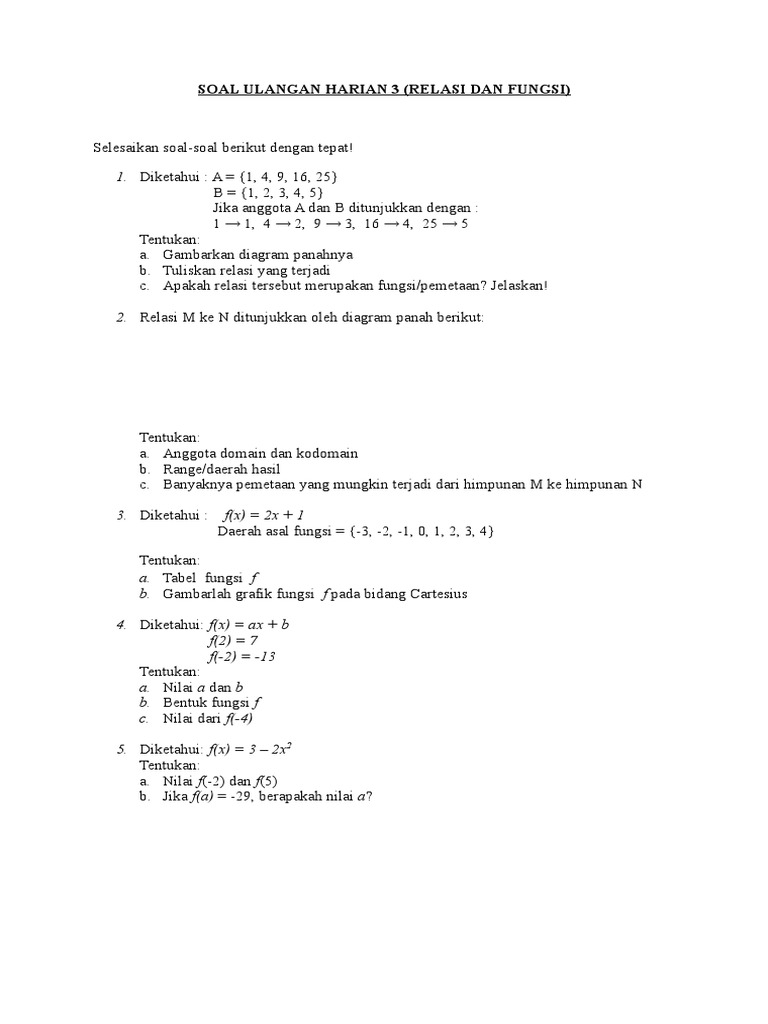 Soal Ulangan Relasi Dan Fungsi Pdf Document