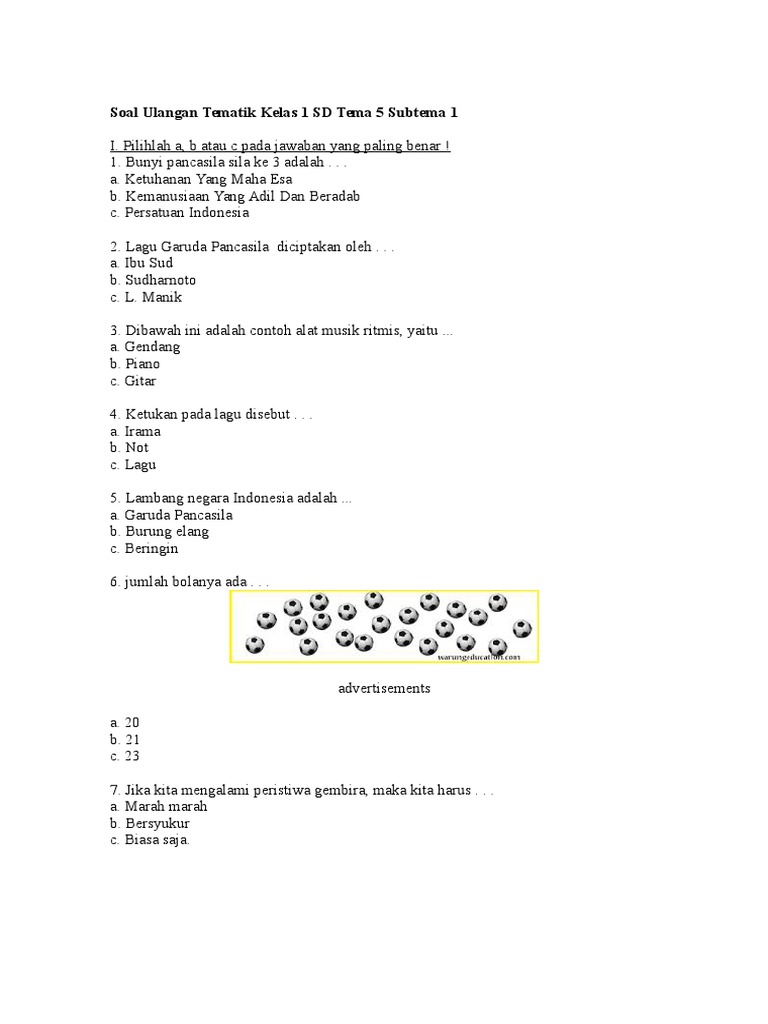 Soal Ulangan Tematik Kelas 1 Sd Tema 5 Subtema 1