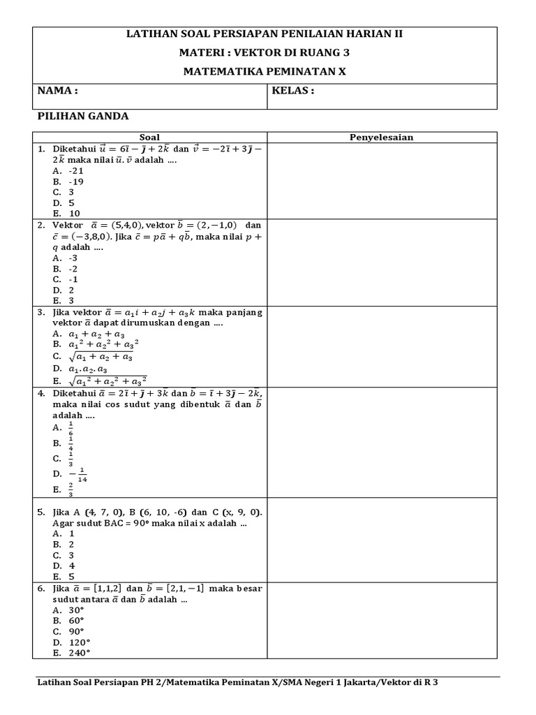 Soal Vektor Matematika Dan Kunci Jawaban 2019